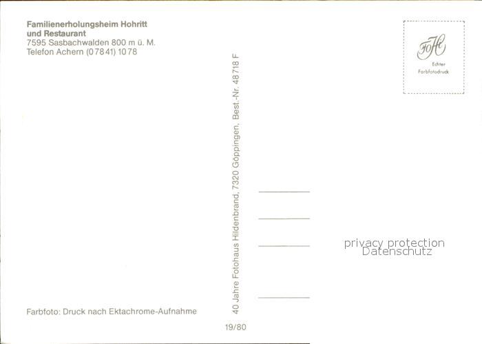 72547549 Sasbachwalden Erholungsheim Hohritt mit Restaurant postalisch nicht gelaufen Erhaltung siehe scans [WerneD78 kv017box] KatCode: 11110008317118