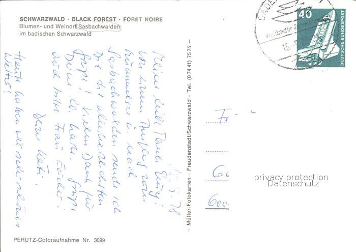 72444730 alte Postkarte Sasbachwalden Fachwerkhaeuser Blumen und Weinort Schwarzwald postalisch gelaufen Erhaltung siehe scans KatCode: 11110008317118