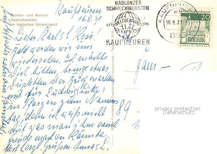 73066613 alte Postkarte Sasbachwalden Fachwerkhaeuser Trachten postalisch gelaufen Erhaltung siehe scans [WerneD78] KatCode: 11110008317118