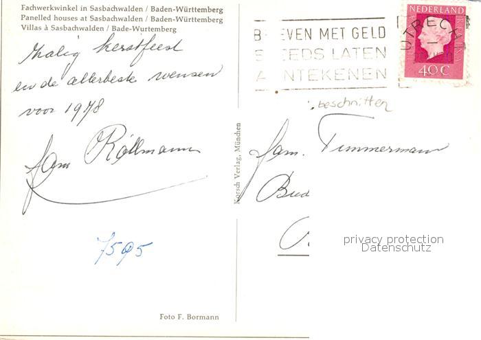 73311808 alte Postkarte Sasbachwalden Fachwerkwinkel postalisch gelaufen Erhaltung siehe scans [KathaD81] KatCode: 11110008317118