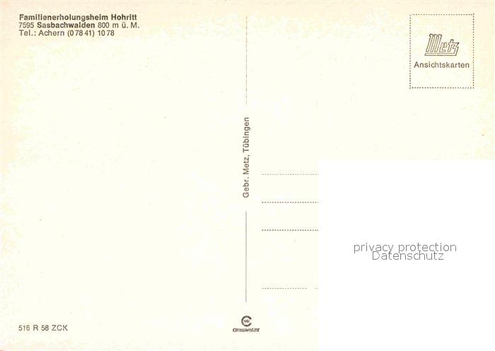 72903472 Sasbachwalden Familienerholungsheim Hohritt postalisch nicht gelaufen Erhaltung siehe scans [FriedD77] KatCode: 11110008317118