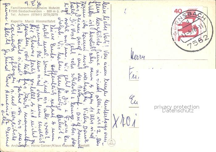 72535524 alte Postkarte Sasbachwalden Familienerholungsheim Hohritt postalisch gelaufen Erhaltung siehe scans [AndreD76 kt121box] KatCode: 11110008317118