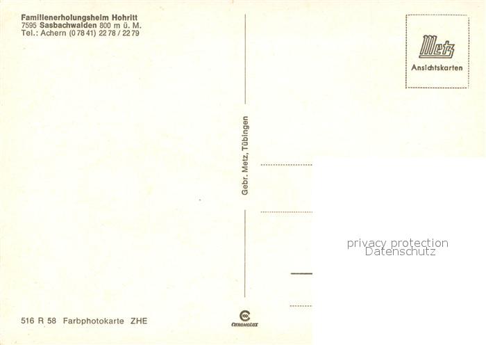 73720835 Sasbachwalden Familienerholungsheim Hohritt postalisch nicht gelaufen Erhaltung siehe scans [WerneD78] KatCode: 11110008317118