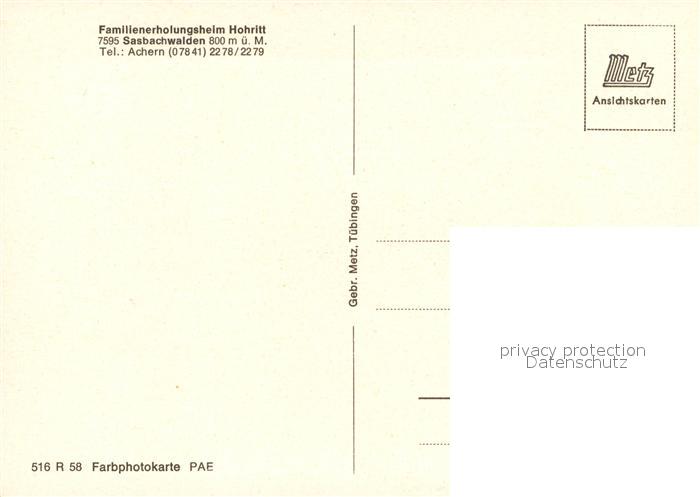 73169167 Sasbachwalden Familienerholungsheim Hohritt postalisch nicht gelaufen Erhaltung siehe scans [KathaD81] KatCode: 11110008317118