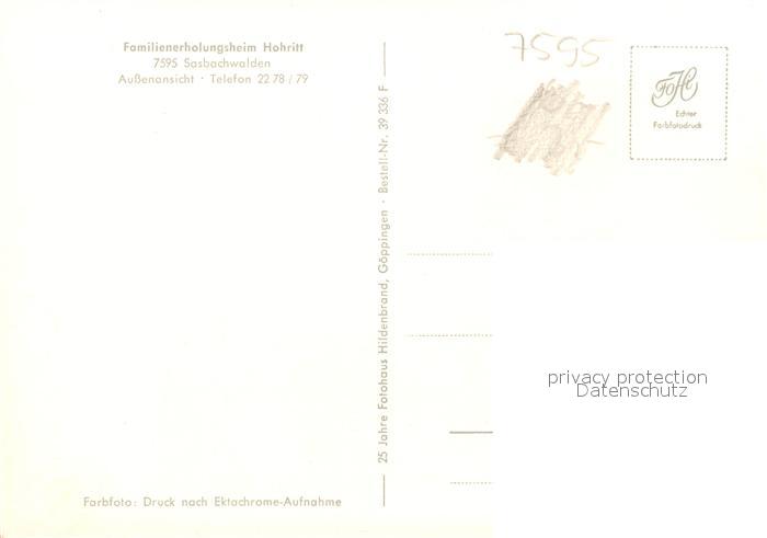 73160759 Sasbachwalden Familienerholungsheim Hohritt postalisch nicht gelaufen Erhaltung siehe scans [KathaD81] KatCode: 11110008317118