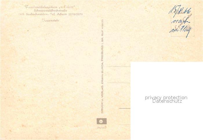 72707351 Sasbachwalden Familienerholungsheim Hohritt Bauernstube postalisch nicht gelaufen Erhaltung siehe scans [WerneD78] KatCode: 11110008317118