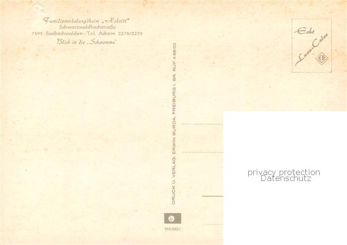 73776007 Sasbachwalden Familienerholungsheim Hohritt Blick in die Schwemme postalisch nicht gelaufen Erhaltung siehe scans [WerneD78] KatCode: 11110008317118