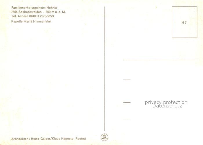 73131529 Sasbachwalden Familienerholungsheim Hohritt Kapelle Maria Himmelfahrt postalisch nicht gelaufen Erhaltung siehe scans [NatalD47] KatCode: 11110008317118