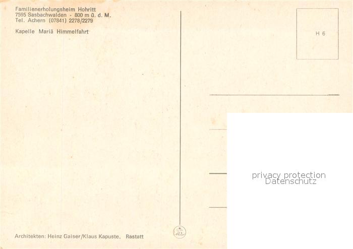 73715974 Sasbachwalden Familienerholungsheim Hohritt Kapelle Mariae Himmelfahrt postalisch nicht gelaufen Erhaltung siehe scans [WerneD78] KatCode: 11110008317118