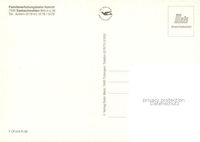 73152592 Sasbachwalden Familienerholungsheim Hohritt Schwarzwald postalisch nicht gelaufen Erhaltung siehe scans [FriedD77] KatCode: 11110008317118