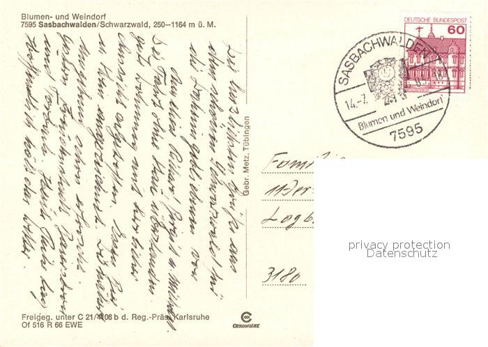 73170707 alte Postkarte Sasbachwalden Fliegeraufnahme postalisch gelaufen Erhaltung siehe scans [KathaD81] KatCode: 11110008317118