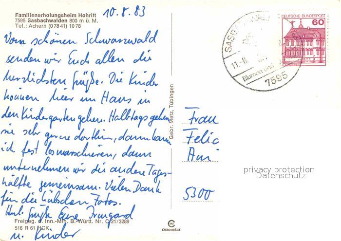 72785541 alte Postkarte Sasbachwalden Fliegeraufnahme Erholungsheim Hohritt postalisch gelaufen Erhaltung siehe scans [AndreD76] KatCode: 11110008317118