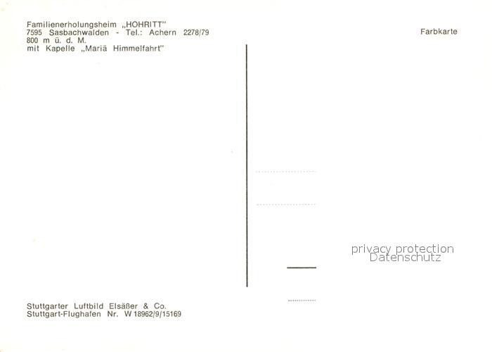 73204091 Sasbachwalden Fliegeraufnahme Familienerholungsheim Hohritt Kapelle Mariae Himmelfahrt postalisch nicht gelaufen Erhaltung siehe scans [NatalD47] KatCode: 11110008317118