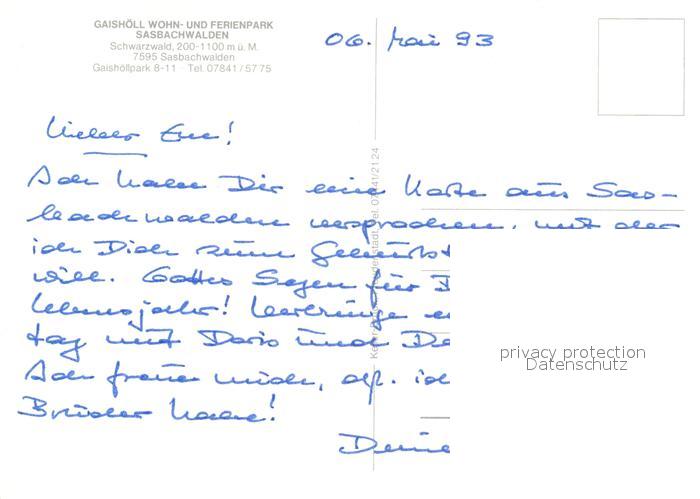 73203548 Sasbachwalden Gaishoell Wohn- und Ferienpark im Schwarzwald postalisch nicht gelaufen Erhaltung siehe scans [FriedD77] KatCode: 11110008317118