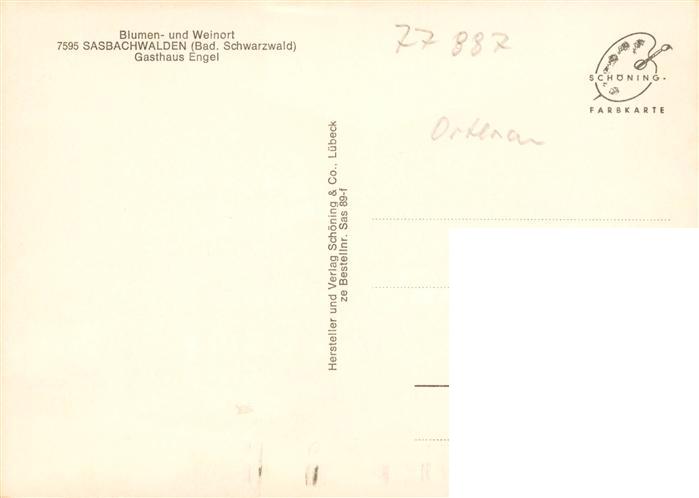 73888177 Sasbachwalden Gasthaus Engel Fachwerkhaus postalisch nicht gelaufen Erhaltung siehe scans [FriedD77] KatCode: 11110008317118