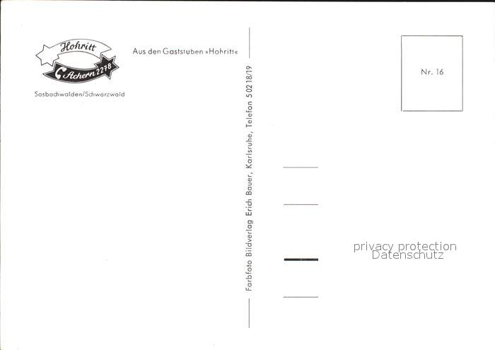 72570613 Sasbachwalden Gasthaus Hohritt postalisch nicht gelaufen Erhaltung siehe scans [AndreD76] KatCode: 11110008317118