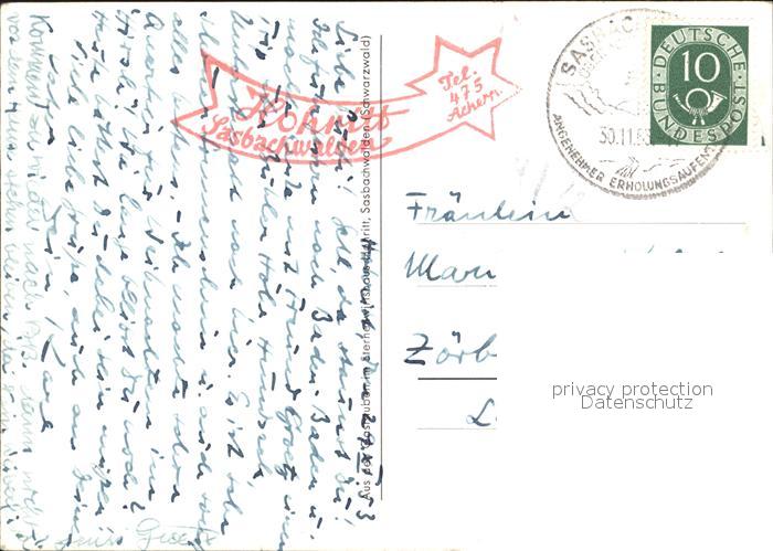 72097874 alte Postkarte Sasbachwalden Gasthaus Hohritt postalisch gelaufen Erhaltung siehe scans KatCode: 11110008317118