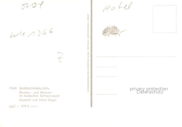 73163423 Sasbachwalden Gasthof Hotel Engel postalisch nicht gelaufen Erhaltung siehe scans [WerneD78] KatCode: 11110008317118