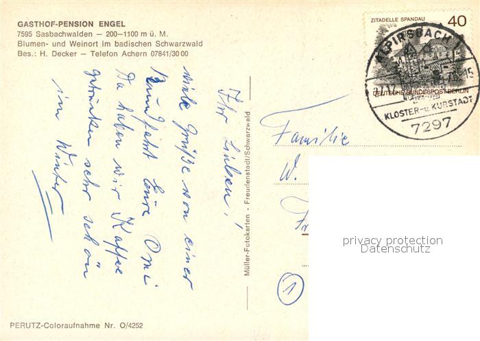 73166948 alte Postkarte Sasbachwalden Gasthof Pension Engel postalisch gelaufen Erhaltung siehe scans [KathaD81] KatCode: 11110008317118