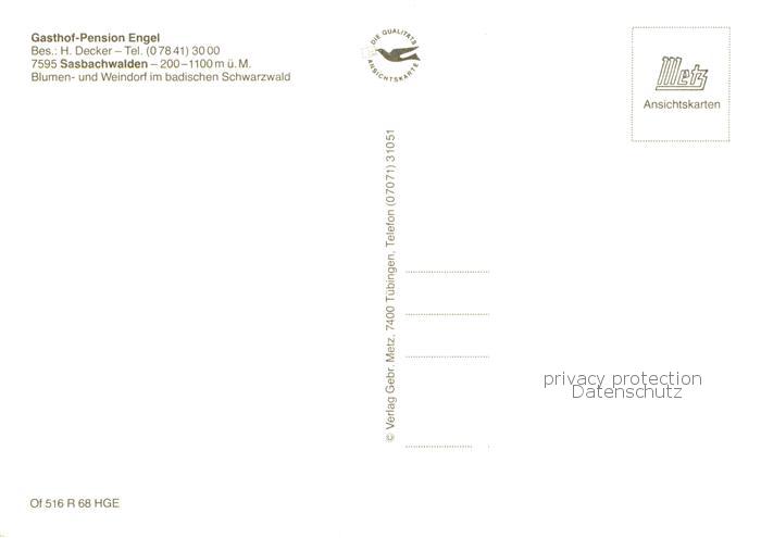 73795769 Sasbachwalden Gasthof Pension Engel Fachwerkhaus postalisch nicht gelaufen Erhaltung siehe scans [FriedD77] KatCode: 11110008317118
