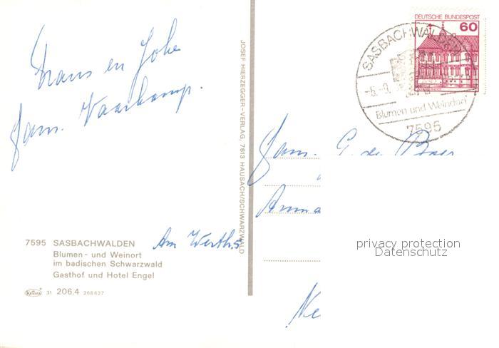73306686 alte Postkarte Sasbachwalden Gasthof und Hotel Engel postalisch gelaufen Erhaltung siehe scans [WerneD78] KatCode: 11110008317118