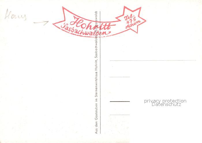 73145009 Sasbachwalden Gaststaette Hohritt postalisch nicht gelaufen Erhaltung siehe scans [FriedD77] KatCode: 11110008317118