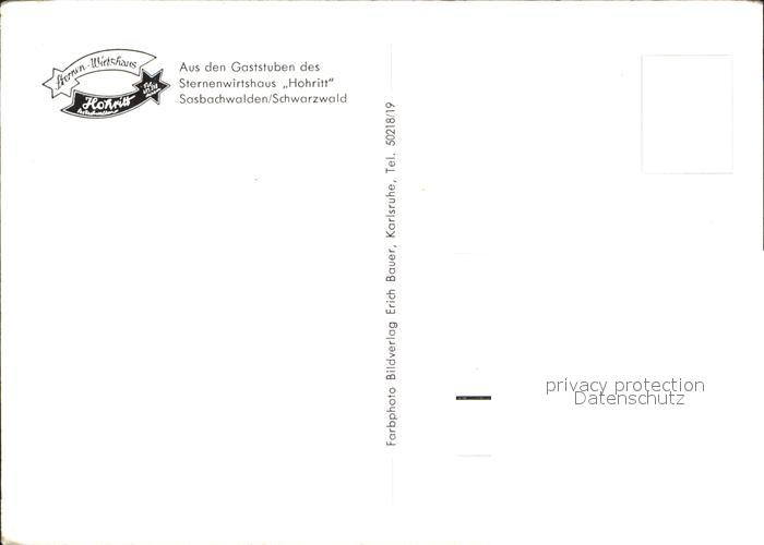 72598405 Sasbachwalden Gaststube der Sternenwirtschaft Hohritt postalisch nicht gelaufen Erhaltung siehe scans [LiesaD40] KatCode: 11110008317118