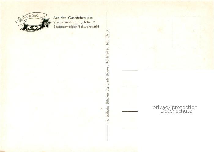 73775979 Sasbachwalden Gaststube des Sternenwirtshaus Hohritt postalisch nicht gelaufen Erhaltung siehe scans [WerneD78] KatCode: 11110008317118