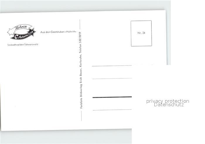 72182875 Sasbachwalden Gaststube Hohritt postalisch nicht gelaufen Erhaltung siehe scans KatCode: 11110008317118