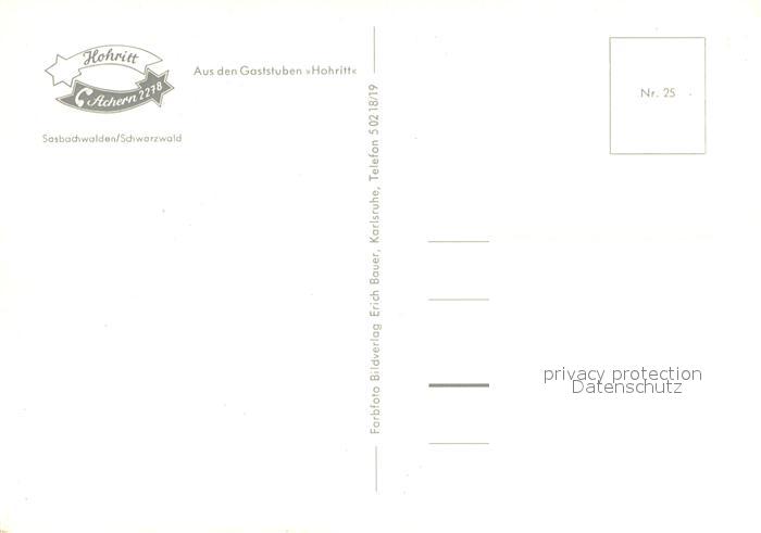 73650452 Sasbachwalden Gaststube Hohritt postalisch nicht gelaufen Erhaltung siehe scans [FriedD77] KatCode: 11110008317118