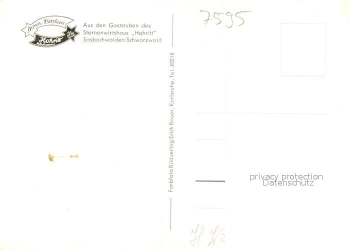 73149160 Sasbachwalden Gaststube Sternenwirtshaus Hohritt postalisch nicht gelaufen Erhaltung siehe scans [FriedD77] KatCode: 11110008317118