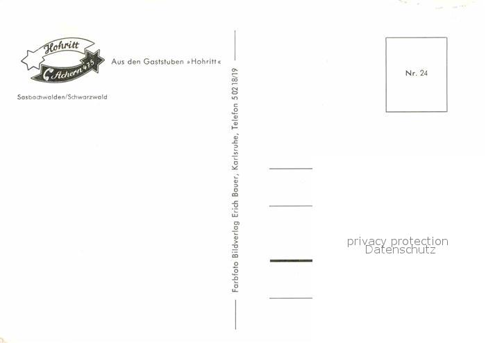 72783945 Sasbachwalden Gaststube Sternenwirtshaus Hohritt postalisch nicht gelaufen Erhaltung siehe scans [FriedD77] KatCode: 11110008317118