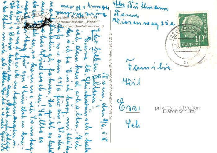 73637419 alte Postkarte Sasbachwalden Gaststube Wirtshaus Hohritt im Schwarzwald postalisch gelaufen Erhaltung siehe scans [FriedD77] KatCode: 11110008317118