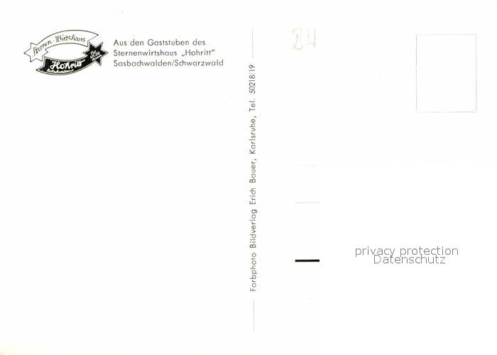 72675028 Sasbachwalden Gaststuben des Sternenwirtshauses Hohritt postalisch nicht gelaufen Erhaltung siehe scans [WerneD78] KatCode: 11110008317118