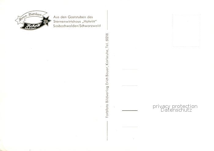 72942568 Sasbachwalden Gaststuben des Sternewirtshaus Hohritt postalisch nicht gelaufen Erhaltung siehe scans [LiesaD40] KatCode: 11110008317118