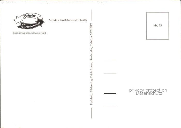 71933081 Sasbachwalden Gaststuben Hohritt postalisch nicht gelaufen Erhaltung siehe scans KatCode: 11110008317118