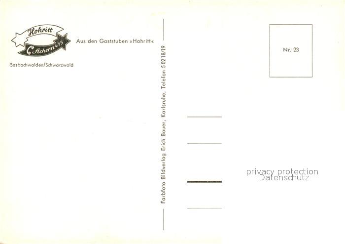73166950 Sasbachwalden Gaststuben Hohritt postalisch nicht gelaufen Erhaltung siehe scans [KathaD81] KatCode: 11110008317118