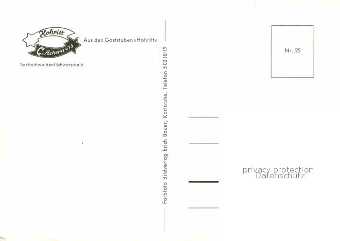 72783887 Sasbachwalden Gaststuben Hohritt postalisch nicht gelaufen Erhaltung siehe scans [FriedD77] KatCode: 11110008317118