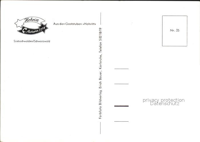 72534164 Sasbachwalden Gaststuben Hohritt postalisch nicht gelaufen Erhaltung siehe scans [FriedD77 kt118box] KatCode: 11110008317118