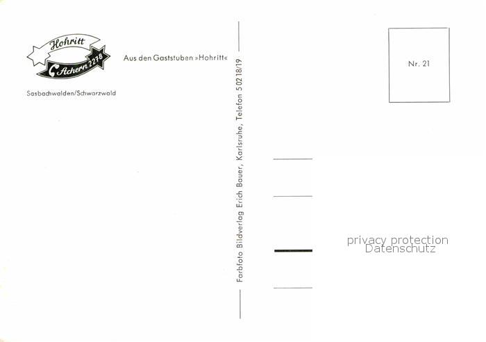 72713043 Sasbachwalden Gaststuben Hohritt Achern postalisch nicht gelaufen Erhaltung siehe scans [LiesaD40] KatCode: 11110008317118