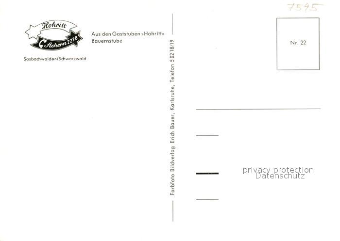 73169157 Sasbachwalden Gaststuben Hohritt Bauernstube postalisch nicht gelaufen Erhaltung siehe scans [KathaD81] KatCode: 11110008317118