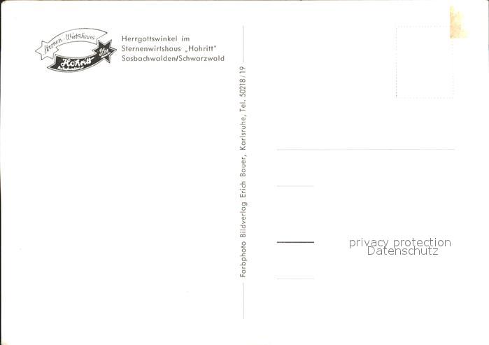 72225860 Sasbachwalden Herrgottswinkel Sternenwirtshaus Hohritt Schwarzwald postalisch nicht gelaufen Erhaltung siehe scans KatCode: 11110008317118