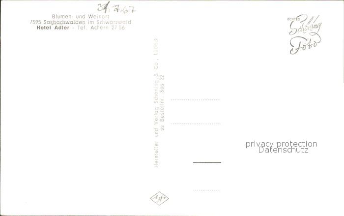 31727524 Sasbachwalden Hotel Adler postalisch nicht gelaufen Erhaltung siehe scans KatCode: 11110008317118