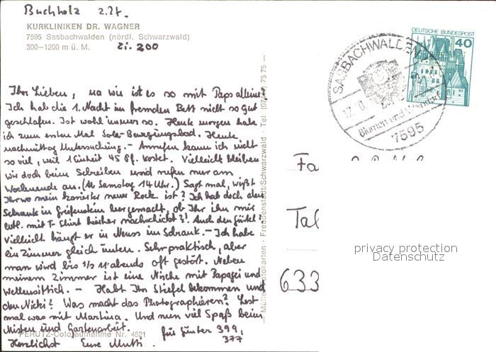 71847823 alte Postkarte Sasbachwalden Kurklinik Dr. Wagner postalisch gelaufen Erhaltung siehe scans KatCode: 11110008317118