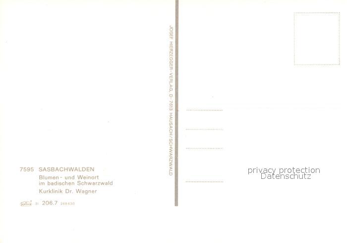 73634751 Sasbachwalden Kurklinik Dr. Wagner im Schwarzwald postalisch nicht gelaufen Erhaltung siehe scans [FriedD77] KatCode: 11110008317118