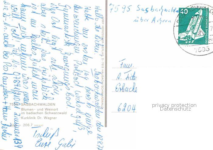 72905824 alte Postkarte Sasbachwalden Kurklinik Dr Wagner postalisch gelaufen Erhaltung siehe scans [FriedD77] KatCode: 11110008317118