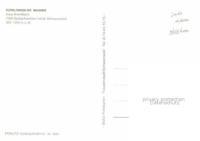 72878663 Sasbachwalden Kurkliniken Dr Wagner Haus Brandbach Schwarzwald postalisch nicht gelaufen Erhaltung siehe scans [FriedD77] KatCode: 11110008317118