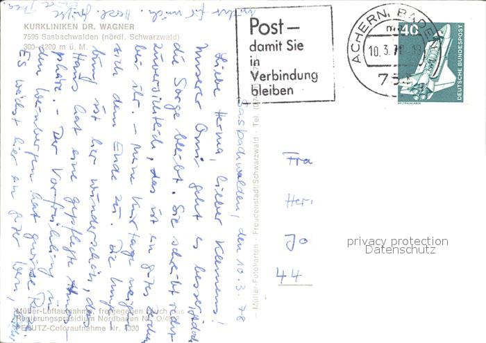 72419201 alte Postkarte Sasbachwalden Kurkliniken Dr Wagner Schwarzwald Fliegeraufnahme postalisch gelaufen Erhaltung siehe scans KatCode: 11110008317118