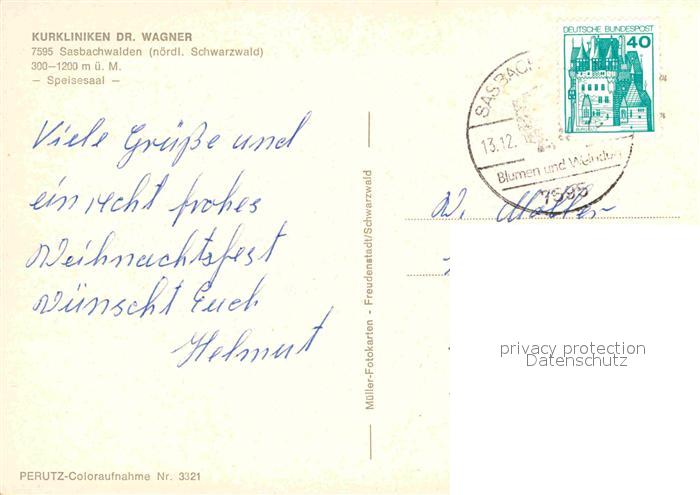 72783237 alte Postkarte Sasbachwalden Kurkliniken Dr Wagner Speisesaal postalisch gelaufen Erhaltung siehe scans [FriedD77] KatCode: 11110008317118