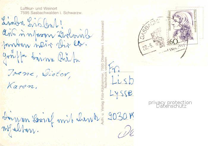 72617179 alte Postkarte Sasbachwalden Panorama postalisch gelaufen Erhaltung siehe scans [WerneD78] KatCode: 11110008317118